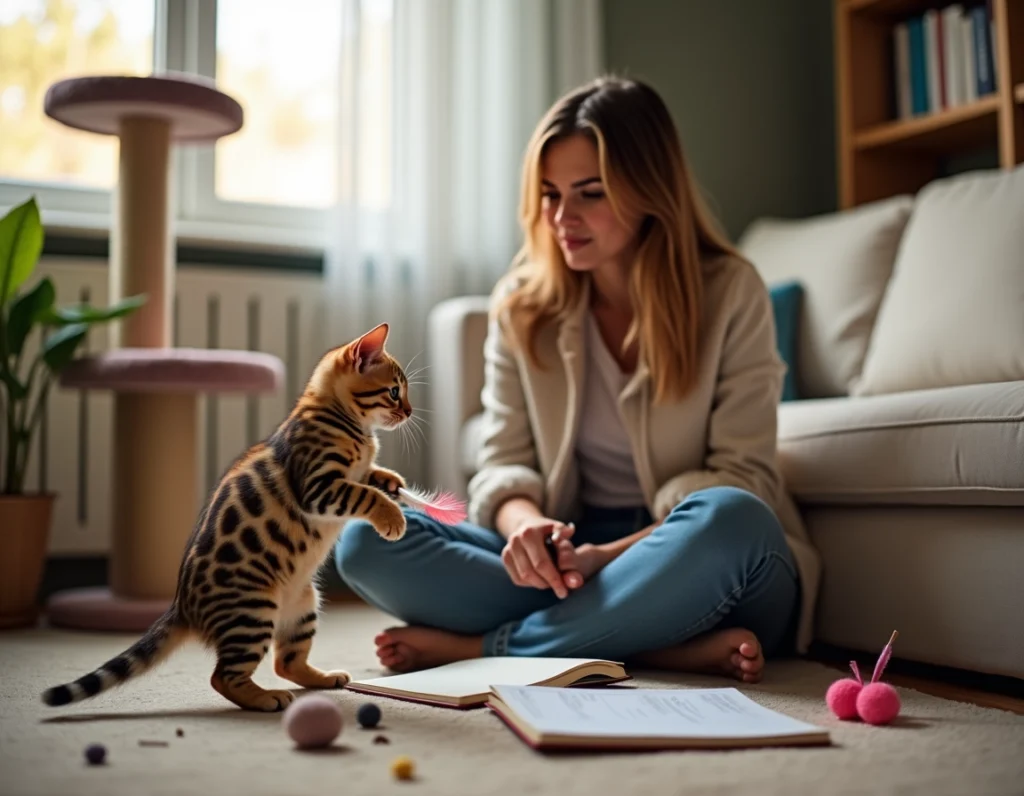 Si des comportements indésirables apparaissent (griffades excessives, chasse excessive, etc.), identifiez la cause et cherchez une solution appropriée. Des griffoirs, des jeux stimulants, voire la consultation d’un comportementaliste félin, peuvent être nécessaires. En moyenne, 5% des Bengals présentent des problèmes de comportement, souvent liés à un manque de stimulation.